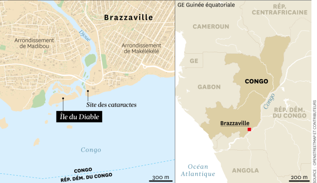 Coincée dans l’affluent sud du fleuve Congo, l’île du Diable occupe une superficie d’environ 14 kilomètres carrés. Elle est située dans l’arrondissement de Madibu, à Brazzaville. Pour s’y rendre, il faut parcourir huit kilomètres, depuis le centre de la capitale. Le lieu est quasi inaccessible, pas même en bateau et encore moins en pirogue ou à la nage. Les courants sont très violents et empêchent toute navigation ou baignade. Et l’île est bordée d’écueils. C’est pourquoi les habitants du coin jugent ce lieu mystérieux et même maléfique. Le lit du fleuve y est très profond, avec des cataractes des deux côtés de l’île. Les premiers pêcheurs qui ont essayé d’accoster sur l’île sont morts, emportés par les courants.