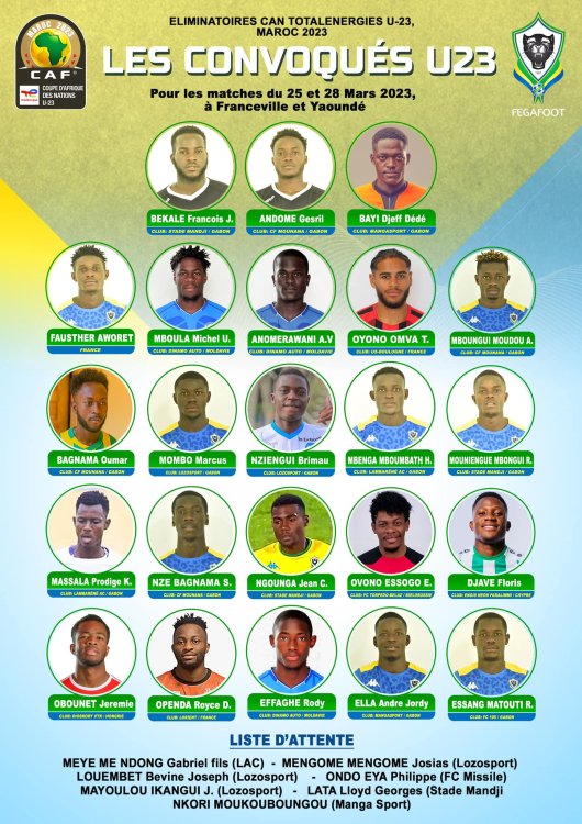 A l’occasion de la traditionnelle conférence de presse, tenue ce samedi 11 mars 2023 à Libreville, le sélectionneur national de l’équipe U23 du Gabon a rendu publique sa liste de 23 joueurs face aux Lions indomptables du Cameroun. Un choc régional pour une place à la prochaine joute continentale de la catégorie.